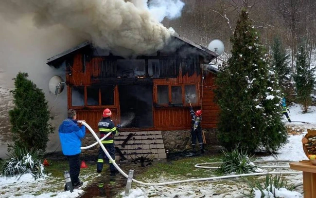 O casă de vacanţă din Munţii Orăştiei a fost devastată de foc. Incendiul izbucnit la coşul de fum