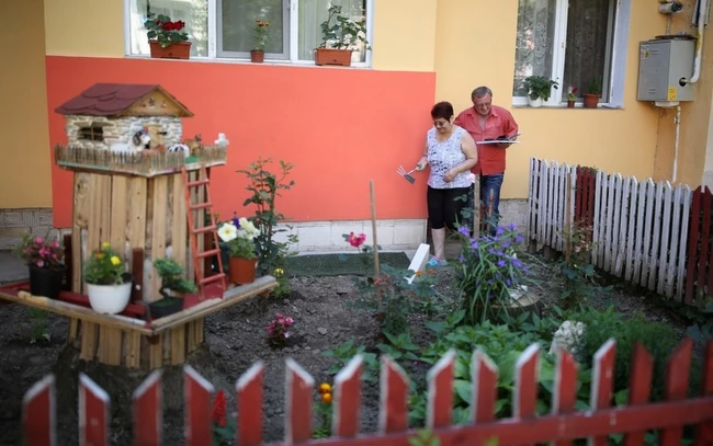 O familie şi-a transformat zona verde din faţa blocului într-un „colţ de rai”. Soţii au fost premiaţi pentru gestul lor