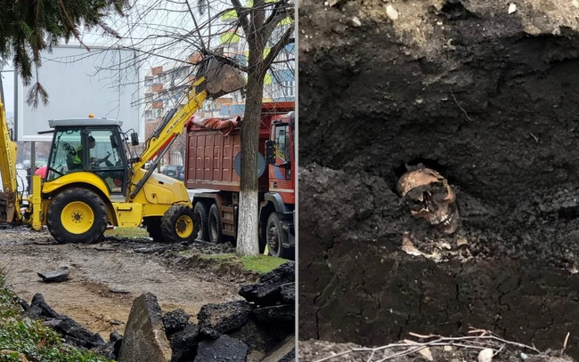 Un muncitor care lucra la excavarea unui teren din fața pieței centrale din municipiul Deva a descoperit o țeastă de om și mai multe oase umane, vechi.