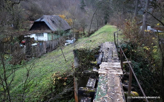 Podul de fier şi beton, acoperit cu traverse şi scânduri, mai este folosit de câţiva localnici din Govâjdia.