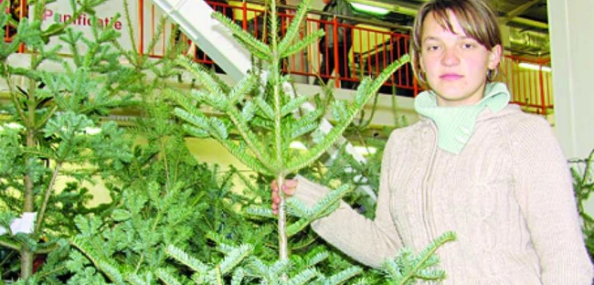 Primii brazi aduşi în piaţa din Deva costă între 5 şi 100 de lei. Alina Mateiu din Câmpeni (foto), împreună cu mama sa, încearcă să vândă cât mai mulţi brazi.