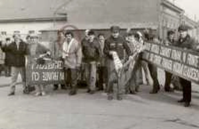 Fotografia care însoţeşte textul îl înfăţişează pe Viorel Arion alături de alţi hunedoreni, în centrul municipiului, pregătindu-se să distrugă bannerele cu lozinci ceauşiste.