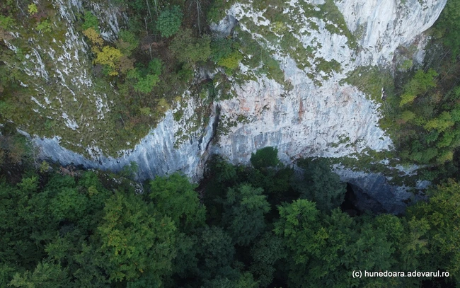 Însă ascunzătoarea comorii se afla undeva mai sus de gura peșterii, în peretele de stâncă ce se înalță până la aproape 200 de metri deasupra intrării (video - Adevărul).