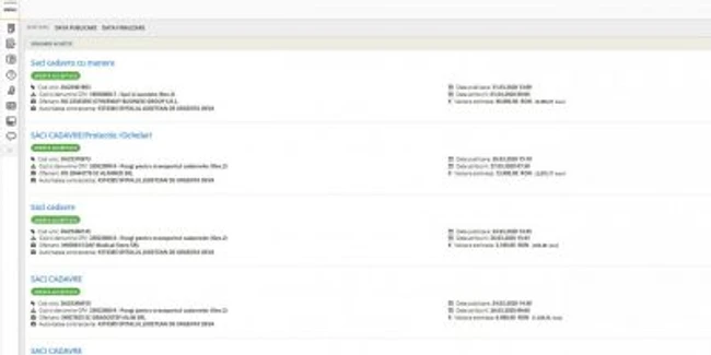 Tot în 24 martie, Spitalul Judeţean de Urgenţă Deva a achiziţionat 48 de saci de cadavre, cu 6.480 de lei (135 de lei bucata): „saci cadavre pentru medicină legală, confectionaţi din material impermeabil, personalizaţi, dimensiuni – 2,20 m - 1 m (pe inchis), culori roşu, negru etc., prevăzuţi cu mânere şi fermoar pe 3 laturi. Produs atestat de O.S.I.M. Bucureşti”, se arată în documentul publicat pe SEAP.