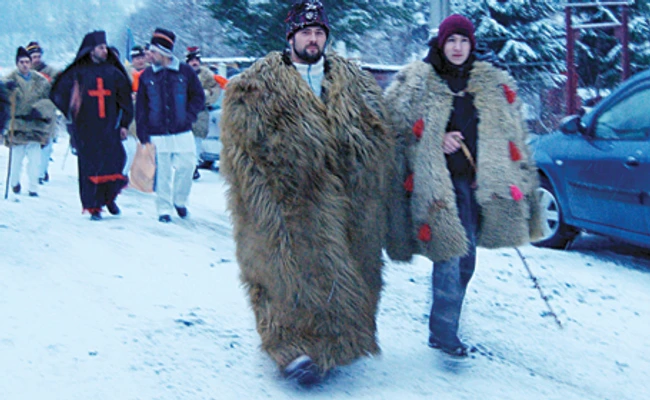Turiştii din staţiunea Straja primesc colinda Crailor care vestesc naşterea lui Isus Hristos