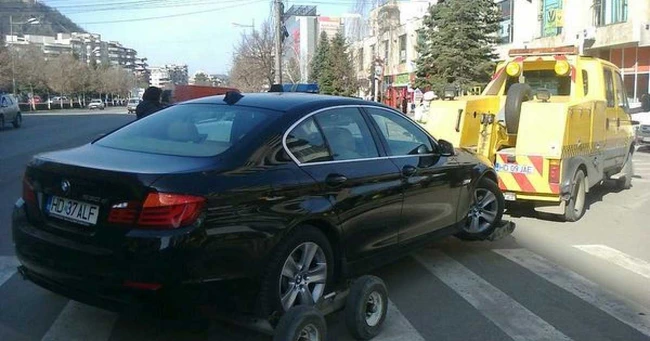 Proprietarul autoturismului BMW a rămas fără bolid după ce l-a parcat la întîmplare, în centrul Devei, fără să ţină cont că blochează o intersecţie din oraş.