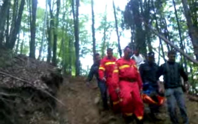 Paramedicii şi pompierii au parcurs 20 de kilometri pe un drum neamenajat, apoi au fost nevoiţi să urce muntele pe jos.