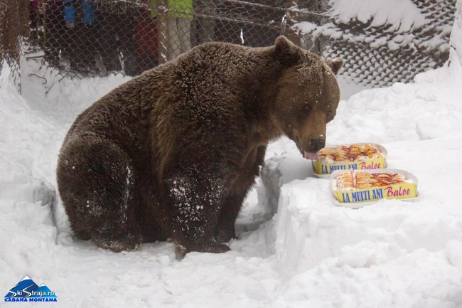 Ursul Baloo a fost sărbătorit în staţiunea Straja. „Mascota vie” a împlinit 19 ani de când trăieşte la poalele pârtiilor