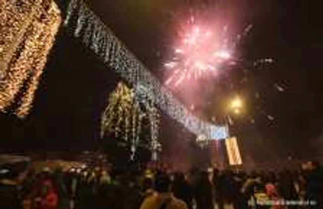 Oamenii au fost invitaţi de primărie să asiste la focurile de artificii, care la miezul nopţii au luminat cerul deasupra Stadionului Michael Klein.