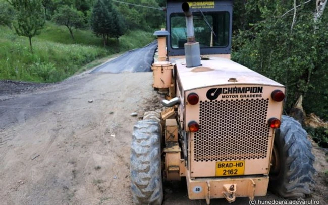 VIDEO Asfaltul a ajuns la poalele cetăţii Piatra Roşie. Până la şoseaua din munţi, drumul judeţean a rămas dezastruos