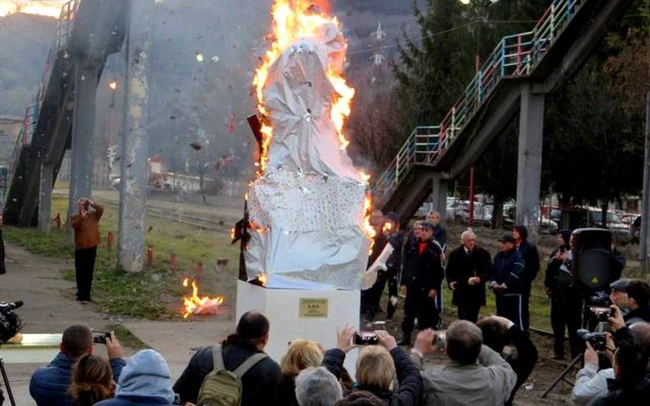 Video VIDEO Mulţimea a rămas înmărmurită la dezvelirea statuii închinate minerilor. Omagiul salvatorilor, cu foc şi cenuşă