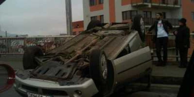 Accident spectaculos la Iaşi: maşină răsturnată pe podul care face legătura cu zona Alexandru cel Bun