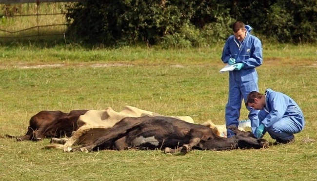 Concret, Inspectorii Direcţiei Sanitar Veterinare au găsit nouă cadavre ale unor vite şi există suspiciuni că o parte din carnea acestora ar fi fost vândută. Rezultatele de laborator pentru probele prelevate de la cei din spital, dar şi de la animalele găsite moarte vor fi aflate miercuri.