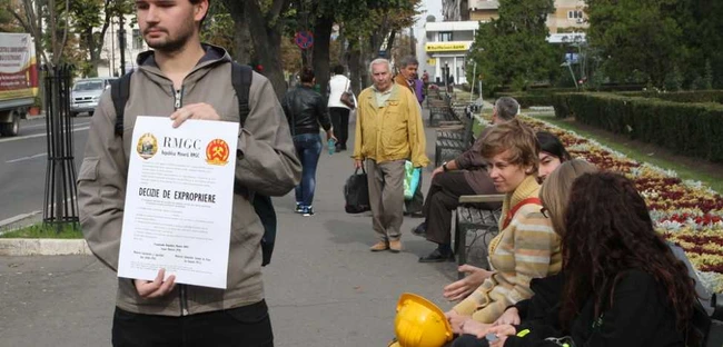 „Dacă legea va fi aprobată, practic orice companie privată de minerit va putea în baza ei să exproprieze pe oricine, persoană fizică sau instituţie, dacă solul respectiv este bogat în zăcăminte.Nu este un protest, ci o campanie de informare. Vom împărţi decizii de expropriere simbolice la Primărie, Judecătorie, instituţiile culturale, biserici“, a spus Alexandru Bodnar (22 de ani), student.