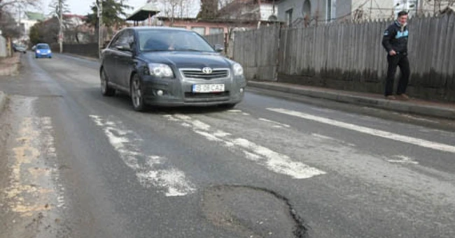 Un alt caz poate fi întâlnit pe o arteră mult mai circulată, respectiv pe drumul către Aeroport. Strada Moara de Vânt a beneficiat şi ea de reabilitare în cadrul proiectului „Marea Asfaltare“, dar deja carosabilul a fost măcinat integral într-o groapă la intersecţia cu strada Floarea, în aşa fel încât a ieşit la iveală vechiul covor asfaltic. „Strada asta are numai o bandă pe sens. Dacă nu îmi vine maşină de pe contrasens, pot evita groapa, altfel nu am de ales“, a spus Florin, şofer pe dubă.