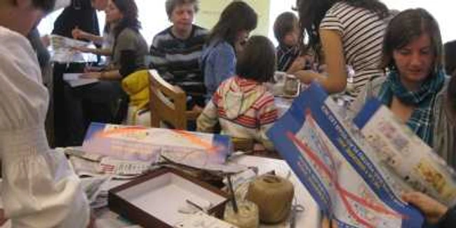 „O echipă se ocupă de bijuterii, realizate din hârtie şi lipite cu lipici din orez fiert, lipici ecologic, broşe, coliere şi cercei. La a doua masă se fac pungi din ziare. Sunt ziare în toate limbile, cu sfoară, capse şi tot cu lipici din orez. A treia masă este cea unde se fac coşuleţe din hârtie, iar ultima grupă realizează recipiente şi decoraţiuni pentru brad", a spus Mihaela Gârleanu, reprezentantul Asociaţiei Mai Bine.