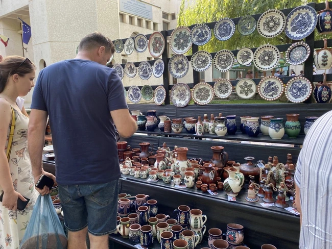 „Reprezint Republica Moldova şi am venit la târg cu ceramică utilitară şi decorativă, realizată toată manual, pictată cu glazură. Am preluat pasiunea aceasta de la părinţi, e o îndeletnicire de familie. Am şi terminat Academia de Arte. Avem cănuţe, farfurii, obiecte decorative. Pe aproape toate obiectele noastre sunt pictate, incizate simbolurile tradiţionale moldoveneşti, inclusiv cele cucuteniene. Pentru fiecare produs în parte procesul de realizare durează în jur la o săptămână”, explică meşterul din Chişinău.