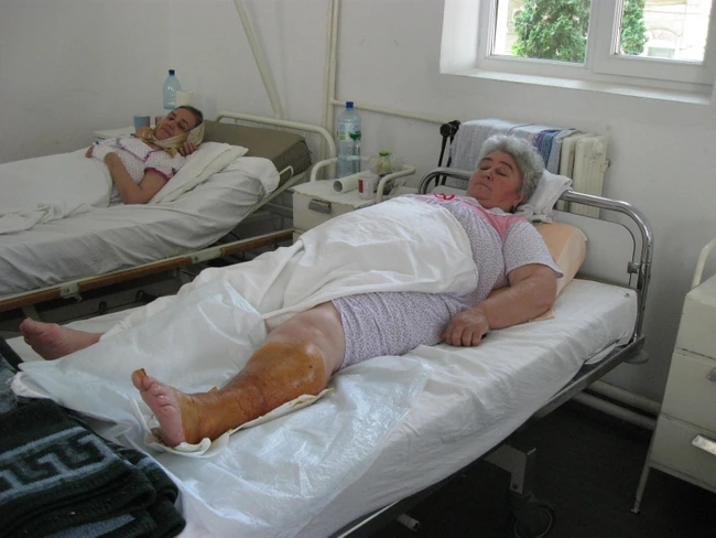 „Mi s-a umflat deodată piciorul, am stat o săptămână acasă sperând că o să mă fac bine, dar când am văzut că nu-mi trece am venit la spital. Am înţeles că am o suprainfecţie. Nu am simţit când am fost înţepată", spune pacienta.