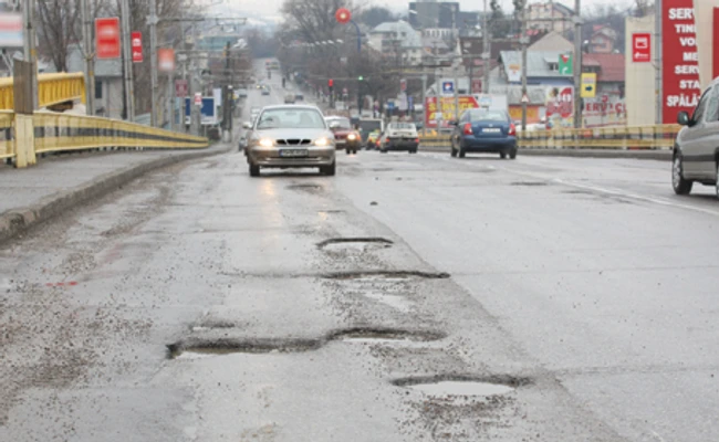 În zonele reabilitate de pe drumurile naţionale, precum Canta şi Podul de Piatră până la Bazar, şoferii sunt nevoiţi să circule doar printre cratere.