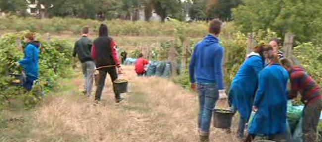 FOTO Metoda de succes a unor elevi din Iaşi de a face bani pentru liceu: tinerii culeg via şcolii, iar strugurii sunt vânduţi unei crame din judeţ