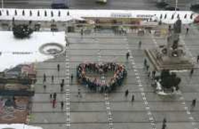 Astfel, de la ora 14.00, în piaţa din centrul Iaşiului, câţiva zeci de studenţi "au desenat" o inimă din propriile trupuri. Simbolul iubirii a fost condimentat cu baloane roşii, galbene şi albastre, pe care le-au primit toţi participanţii la eveniment.