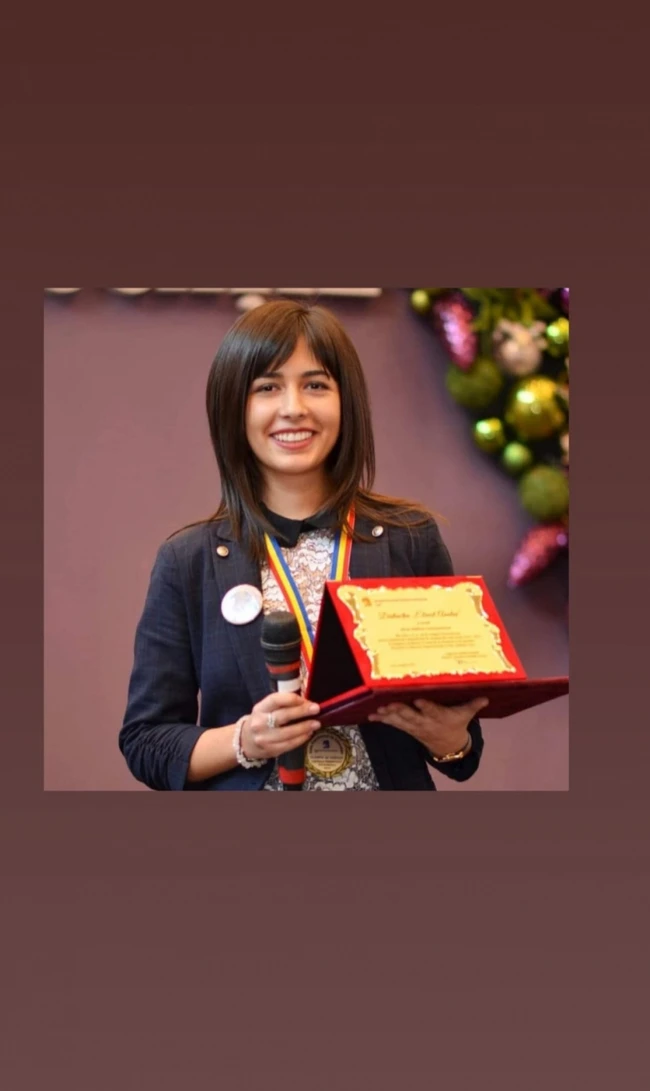 M.C. - Distincţia „Elevul anului“ m-a onorat şi m-a copleşit în acelaşi timp, pentru că mi-a dezvăluit cum sunt privite aceste experienţe din prisma profesorilor pe care îi admir şi care reprezintă o inspiraţie pentru mine. Mă simt norocoasă nu numai pentru ca mi-am găsit o pasiune atât de devreme, ci si pentru că am avut profesori care m-au susţinut şi, cel mai mult, mă simt norocoasă să am o familie care m-a învăţat să am visuri mărete şi a crezut în mine şi m-a sprijinit pentru a le împlini.