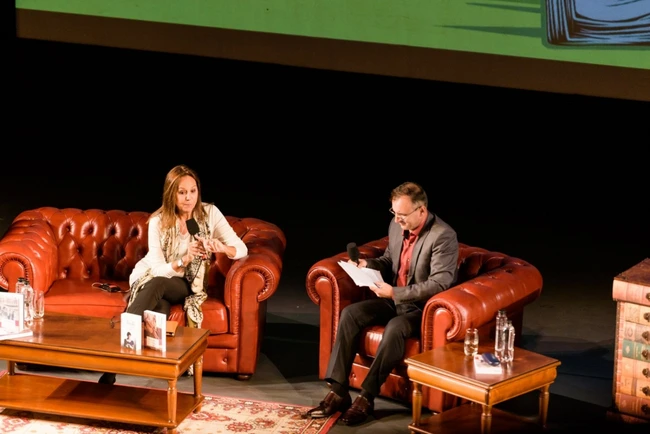 Scriitoarea spaniolă María Dueñas la seara FILIT în dialog cu Robert Şerban FOTO FILIT