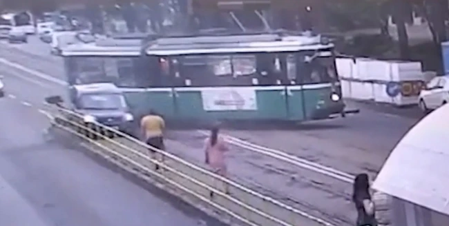 „Tramvaiul circula regulamentar şi maşina a intrat înaintea lui. Un domn din tramvai a zis că l-a văzut că a încercat să întoarcă şi că vorbea la telefon”, a declarat un martor, la faţa locului.