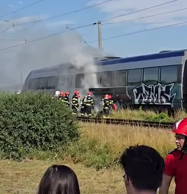 Video Panică într-un tren Interregio, la intrarea în Pașcani: Locomotiva a luat foc în mers. Zeci de persoane s-au autoevacuat