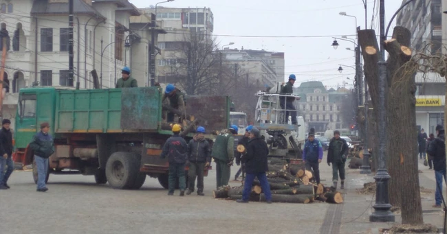 Toţi teii de pe cel mai important bulevard al Iaşiului sunt puşi la pământ de muncitorii primăriei