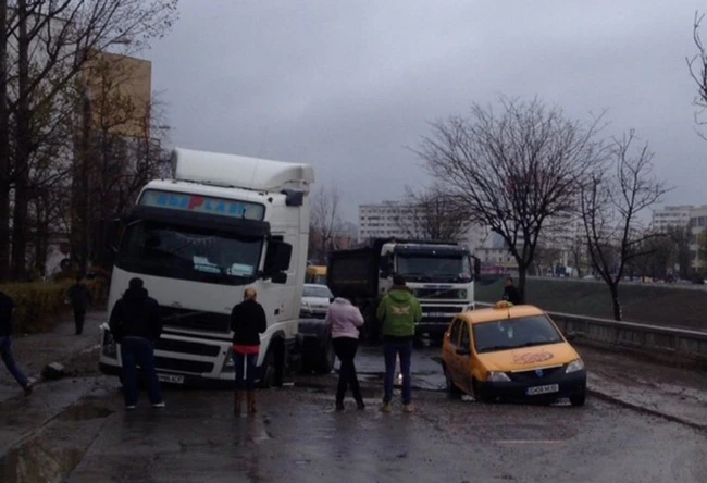 Se întâmplă la Iaşi. Maşini prinse într-un şanţ-capcană astupat superficial pe una dintre cele mai circulate străzi din oraş