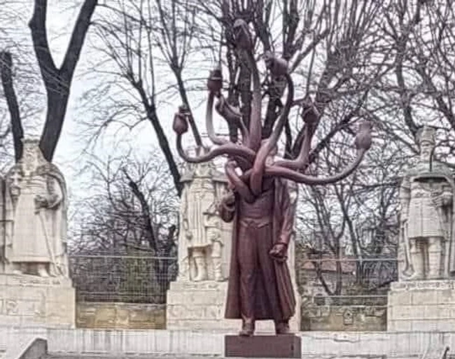 Statuia cu șapte capete care i-a isterizat pe ieșeni: „Oglindește cu fidelitate multitudinea de fețe pe care ni le-ați arătat”