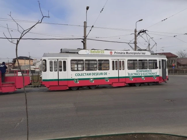 La fiecare sfârşit de săptămână, un tramvai special configurat colectează deşeuri electronice aduse în staţiile din Iaşi. În încercarea de a-i încuraja pe oameni să ajute mai mult mediul, autorităţile din Iaşi oferă premii.