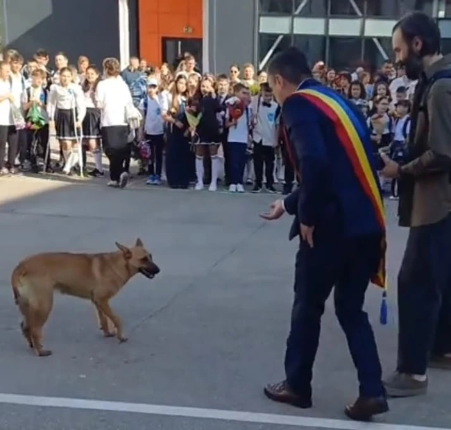Un câine de rasă, care nu se știe cum a pătruns în curtea unei unități școlare din Iași, unde avea loc deschiderea noului an de învățământ, a fost mai popular decât primarul Mihai Chirica.