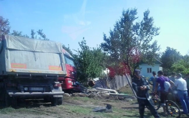 UPDATE Accident la Războieni: un TIR s-a răsturnat şi a distrus gardul unei gospodării