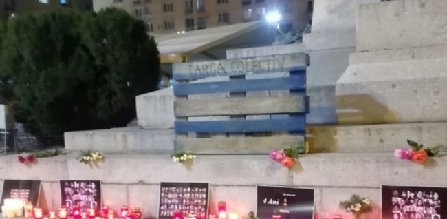 Numele clubului Colectiv a fost scris din lumânările aprinse în Piaţa Unirii în seara zilei de 30 octombrie, iar câţiva ieşeni au scris pe un palet din lemn „Targă Colectiv”, criticând astfel modul în care salvatorii au gestionat situaţia în noaptea tragediei.