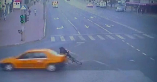 Tânăra pe bicicletă a intrat în intersecţia "Granit" pe culoarea verde a semaforului şi a fost acroşată în roata din faţă de o maşină de taxi care vira spre dreapta. După impact, a fost trântită la pământ, dar n-a fost rănită grav şi s-a ridicat imediat, intrând într-o dispută verbală cu şoferul autoturismului.