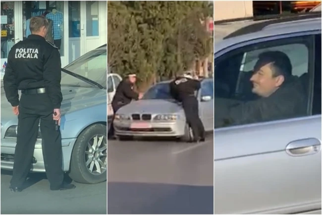Când şoferul a ajuns la maşină, agenţii au vrut să îl legitimeze însă conducătorul auto a refuzat. Unul dintre poliţiştii locali a scos arma din dotare, fapt ce nu l-a impresionat pe şofer, care a dat maşina în spate şi a vrut să plece de la faţa locului.