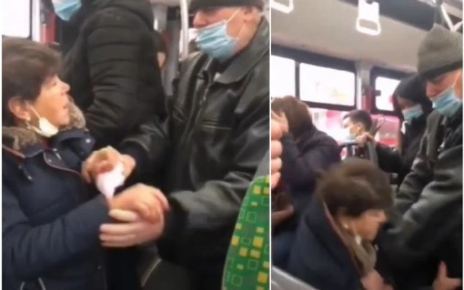 VIDEO O femeie din Iaşi care nu purta mască în autobuz, jignită şi bătută de un călător care n-o purta nici el corect