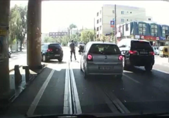 Video VIDEO Probă rară de politeţe. Un tânăr din Iaşi opreşte maşina în mijlocul traficului şi ajută o bătrână să traverseze