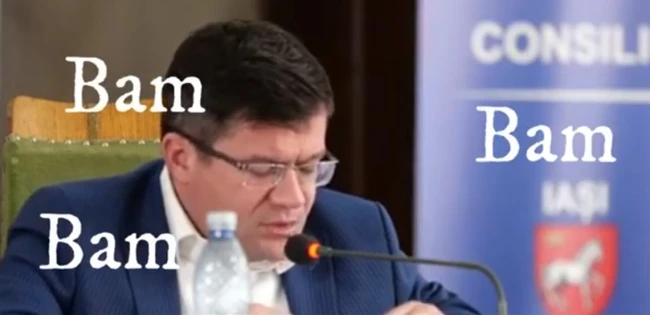 Liderul PNL Iaşi a stâlcit denumirea unei asociaţii şi, iritat că nu poate pronunţa corect cuvintele, a continuat cu „bam, bam, bam”.