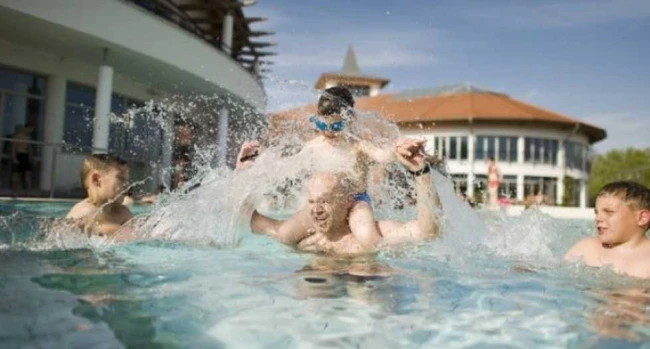 Persoanele active, pasionate de sport, vor avea ocazia să înoate în apa piscinei ultramoderne, ce poate găzdui şi competiţii internaţionale de nataţie; iar pasionaţii de aventuri extreme sunt aşteptaţi de bazinul de tip italian. Distracţia este asigurată în „piscina italiană” de spaţiile deschise care au fost lărgite, de twisterul de apă, de cascadă şi de toboganele uriaşe de mare viteză. Vizitatorii se pot odihni în noul jacuzzi acoperit. Apa cu proprietăţi curative rarisime alimentează patru bazine aflate într-un mediu natural de excepţie, răsfăţând astfel atât trupul, cât şi sufletul. Distracţia devine completă datorită celui mai mare Pool-Bar din Ungaria, care oferă o gamă largă de băuturi.
