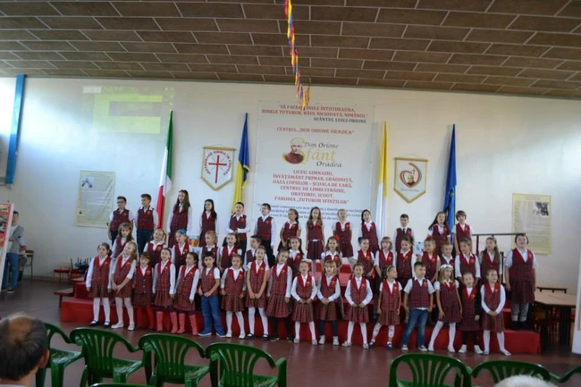 După intonarea Imnului României şi a Imnului Italiei, publicul a fost captivat de un extraordinar program artistic realizat de elevii liceului, în italiană, dar şi în română. S-a vorbit despre voluntariat, dar şi despre proiectele româno-italiene din Liceul Don Orione şi Centrul Cultural Italian din Oradea.