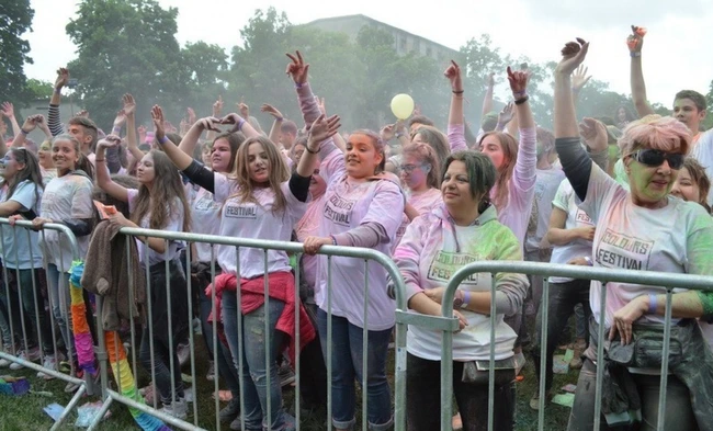 FOTO Distracţie mare în Şanţul Cetăţii. Peste 1.000 de tineri s-au "bătut" cu prafuri colorate