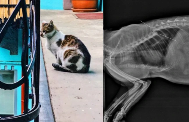 "O pisică nu îşi rupe coloana atunci când cade de la etaj. Eventual îşi rupe un picior. Ea a fost bătută şi apoi aruncată"; a explicat un medic.