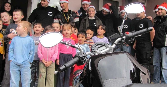 FOTOGALERIE Moș Nicolae a sosit pe motocicletă la copiii de la Centrul Cuore