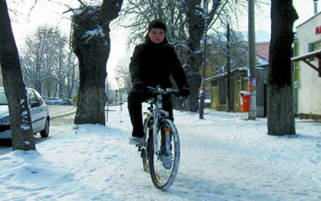 Pe pista care ocoleşte centrul, de la Grădina Zoologică până la Universitate, bicicliştii sunt nevoiţi să facă slalom pe gheaţă sau pe cinci centimetri de zăpadă. În plus, pista funcţionează pe trotuarul pe care circulă şi pietoni. Ca şi cum nu ar fi fost de ajuns, orădenii care locuiesc sau îşi desfăşoară activitatea în zonă nu au curăţat trotuarele de zăpadă, riscând să fie amendaţi cu până la 2.000 lei.