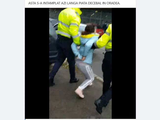 O orădeancă a filmat cu telefonul întreaga scenă, în care se aude cum şi femeia încătuşată, şi oamenii, comentează negativ la adresa poliţiştilor şi a măsurii luate.