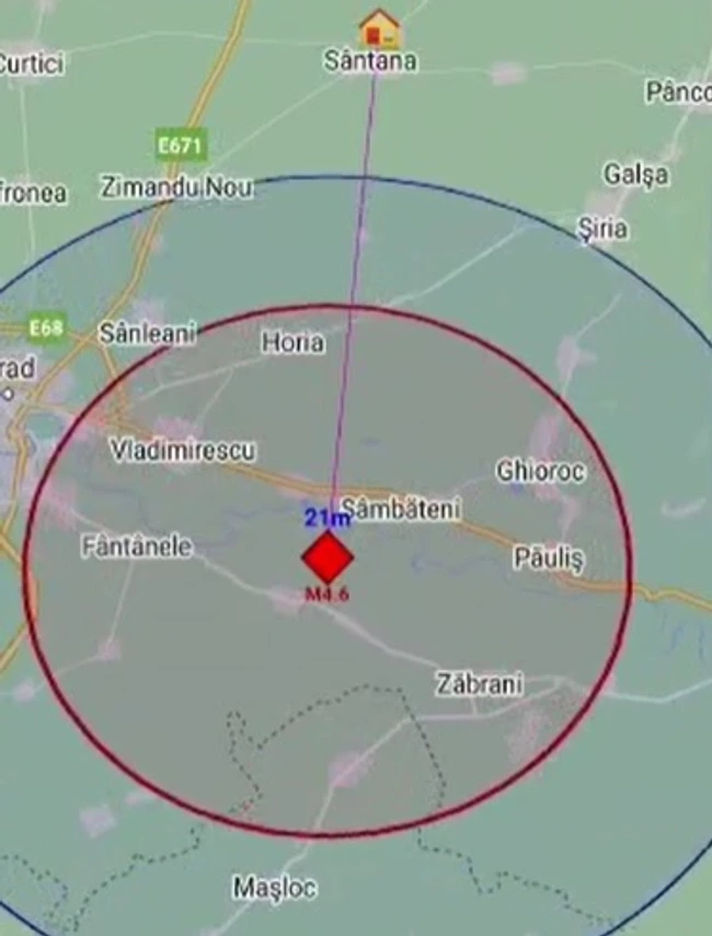 „Cutremurul s-a produs la 24 km SE de Arad, 45 km NE de Timișoara, 77 km SE de Bekescaba, 89 km N de Reșița. La nivelul Dispeceratului ISU Arad 𝑛𝑢 𝑠-𝑎𝑢 𝑖̂𝑛𝑟𝑒𝑔𝑖𝑠𝑡𝑟𝑎𝑡 𝑎𝑝𝑒𝑙𝑢𝑟𝑖 𝑐𝑎𝑟𝑒 𝑠𝑎̆ 𝑠𝑜𝑙𝑖𝑐𝑖𝑡𝑒 𝑠𝑝𝑟𝑖𝑗𝑖𝑛 𝑝𝑜𝑠𝑡-𝑠𝑒𝑖𝑠𝑚. Informații despre măsurile și modul de comportare înainte, pe timpul și după producerea unui seism, pot fi accesate pe portalul fiipregatit.ro/ sau descărcând aplicația DSU. Facem precizarea că, în cazul seismelor, Sistemul RO-ALERT nu va difuza notificări anterior declanșării acestora. Ulterior producerii cutremurului, în cazul în care acesta generează consecințe grave, vor putea fi difuzate mesaje de avertizare a populației, cu măsuri de protecție adecvate (de exemplu: puncte de distribuție a ajutoarelor de urgență)”, a declarat George Pleșca, purtător de cuvânt al ISU Arad.