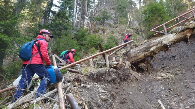 Salvamontişti din Neamţ, care operează non-stop, timp de 365 de zile pe an, în masivul Ceahlău, muncesc în aceste zile la refacerea traseului Cascada Duruitoarea - Piciorul Şchiop - Cabana Dochia - Vârful Toaca,